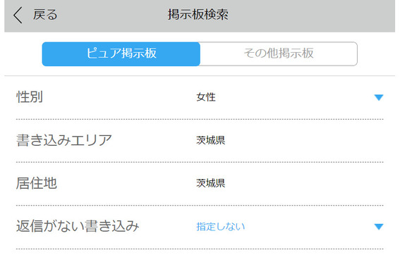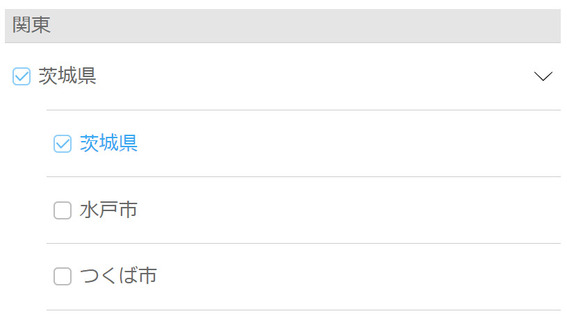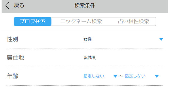 が主な機能となりますが、「検索条件」から「居住地」を「茨城県」にします。