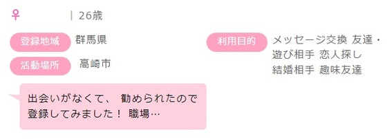 純粋な登録者が大半を占めており彼氏や彼女探しの恋活、婚活から遊び友達、趣味友達、