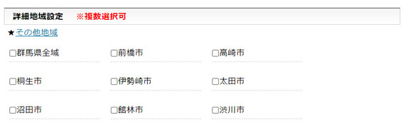 群馬県内の「市」「郡」を選択することができますが「複数選択可」となっていますので、
