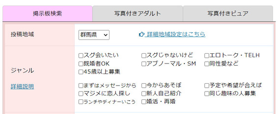 掲示板といっても、PCMAXの場合には「掲示板検索」「写真掲示板検索」など複数の掲示板があり、