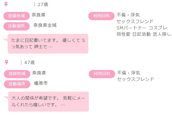 冒頭にもありますが、PCMAXには奈良で恋活や婚活を成功させたい男女や不倫相手やセフレを探したい