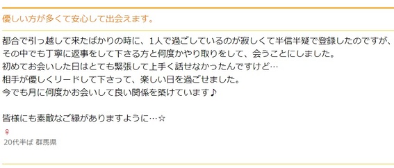 どちらかと言えば「大人色」が強く「真面目な出会い」「大人の出会い」両方に対応しています。