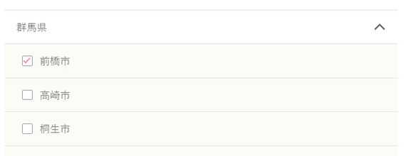 エリアから進むと群馬県内の複数の「市」の単位からエリア設定が可能となっていますので、